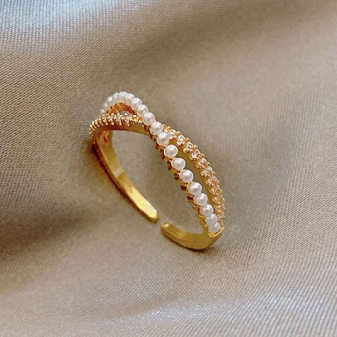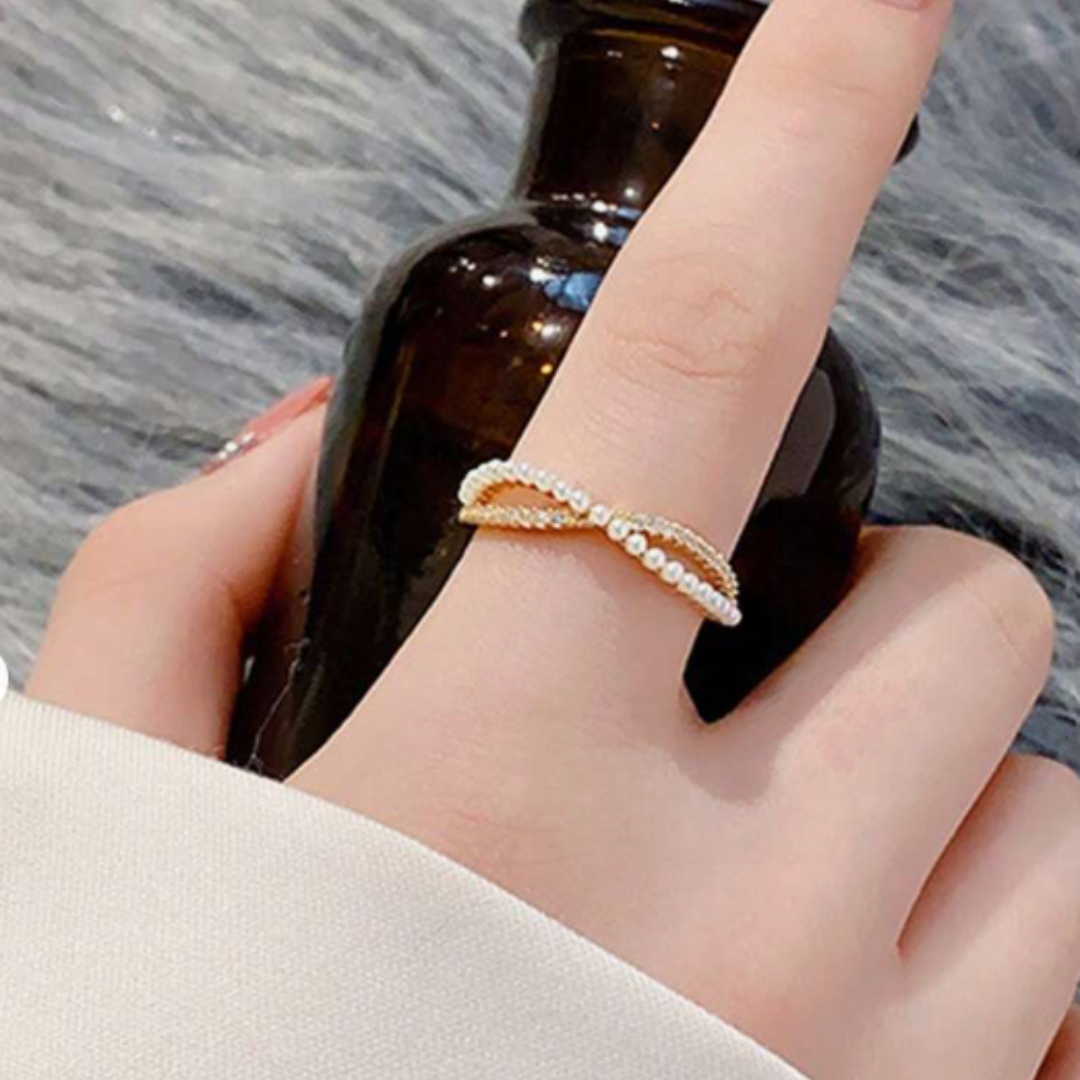 Personality Crossed Cubic Zirconia & Faux Pearl Ring Suitable For Daily Wear By Women